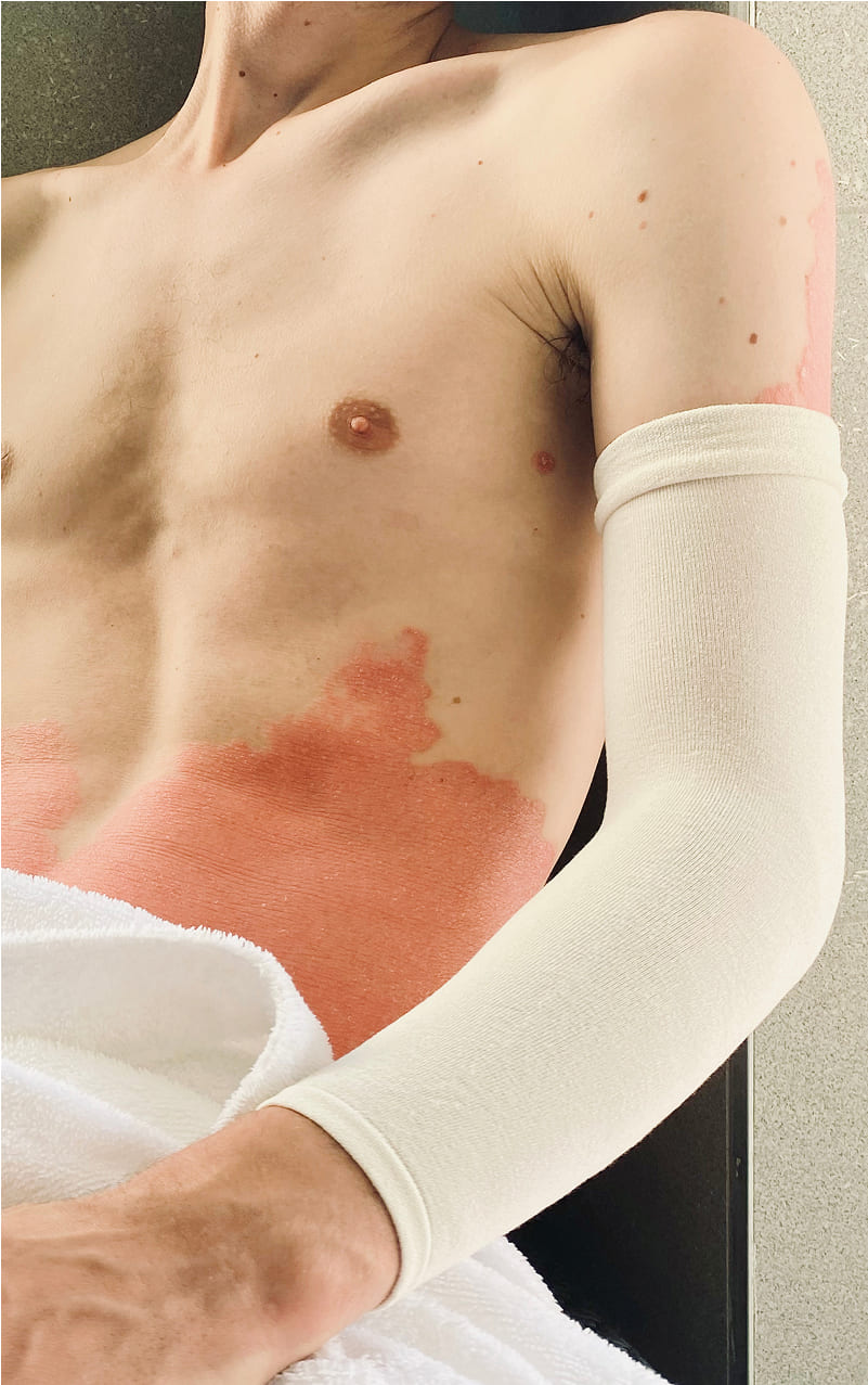 Solution textile : tubes protecteurs pour les bras – à porter de jour comme de nuit, sous un vêtement ou à même la peau.